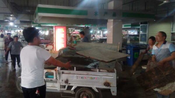 为落实兖州区创城办61号督办单反馈问题,5月21日我局与兴隆农贸市场集中,对市场内部杂物进行全面清理,占道经营货物全部归台,杂物一律清理,清理杂物6车。图片中反映情况中有消费者购买货物放置台面下方情况,针对此问题,要求市场加强对商户的管理,由商户劝导消费者将物品放置在台面内暂存。要求市场加强巡查力度,发现消费者就地托放商品及时予以纠正、规范。