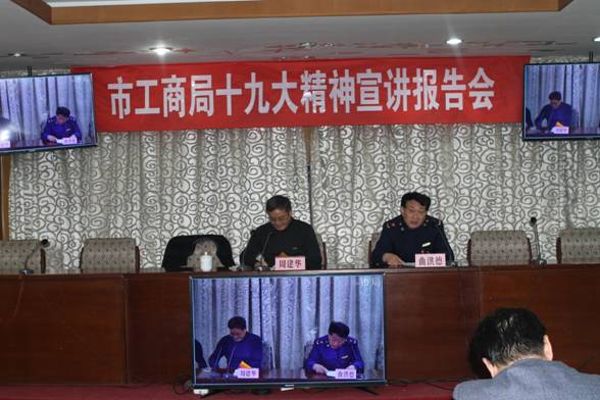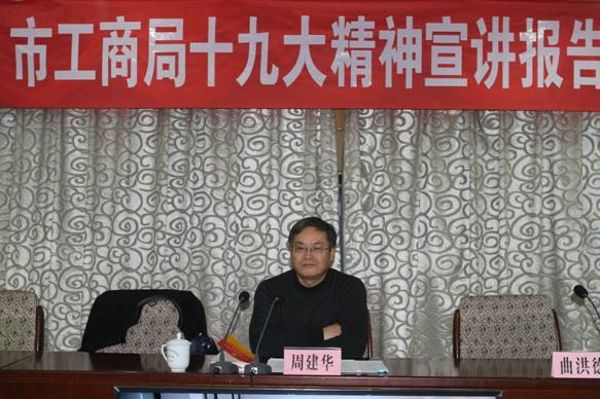 为认真学习、宣传、贯彻党的十九大报告精神,12月8日下午,市工商局举办了党的十九大精神报告会。邀请市委讲师团周建华教授作十九大精神专题辅导报告。