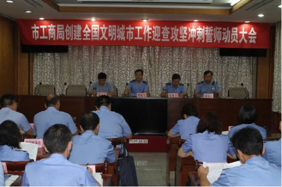 8月22日下午,市工商局组织召开了创城工作迎查攻坚冲刺誓师动员大会。