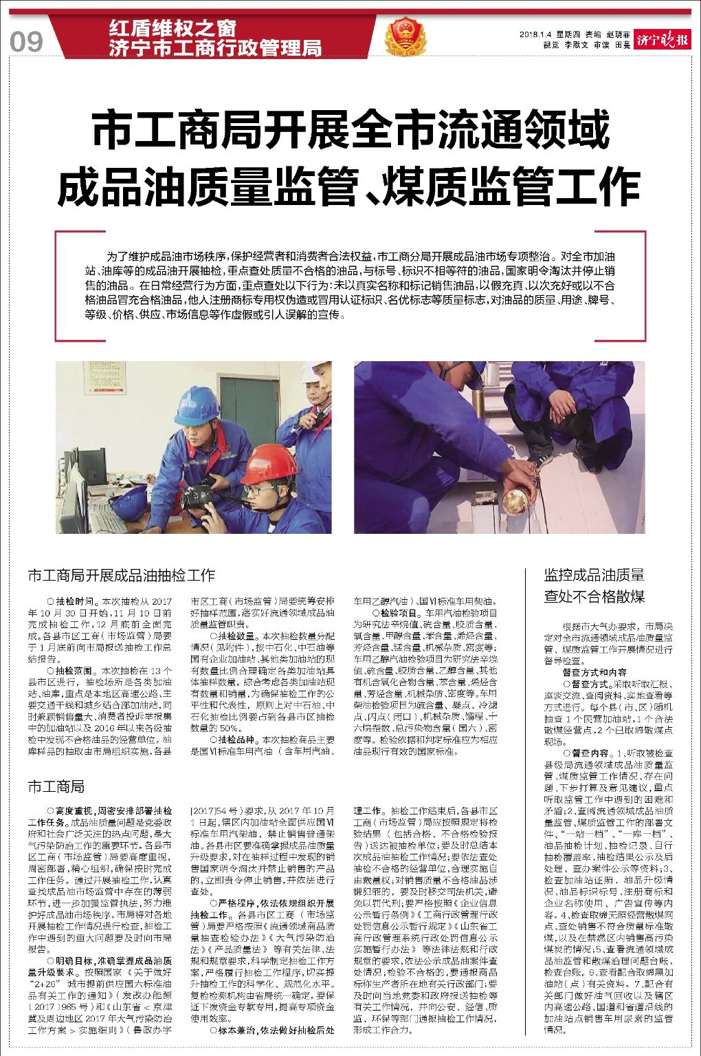 济宁市工商局开展全市流通领域成品油质量监管、煤质监管工作